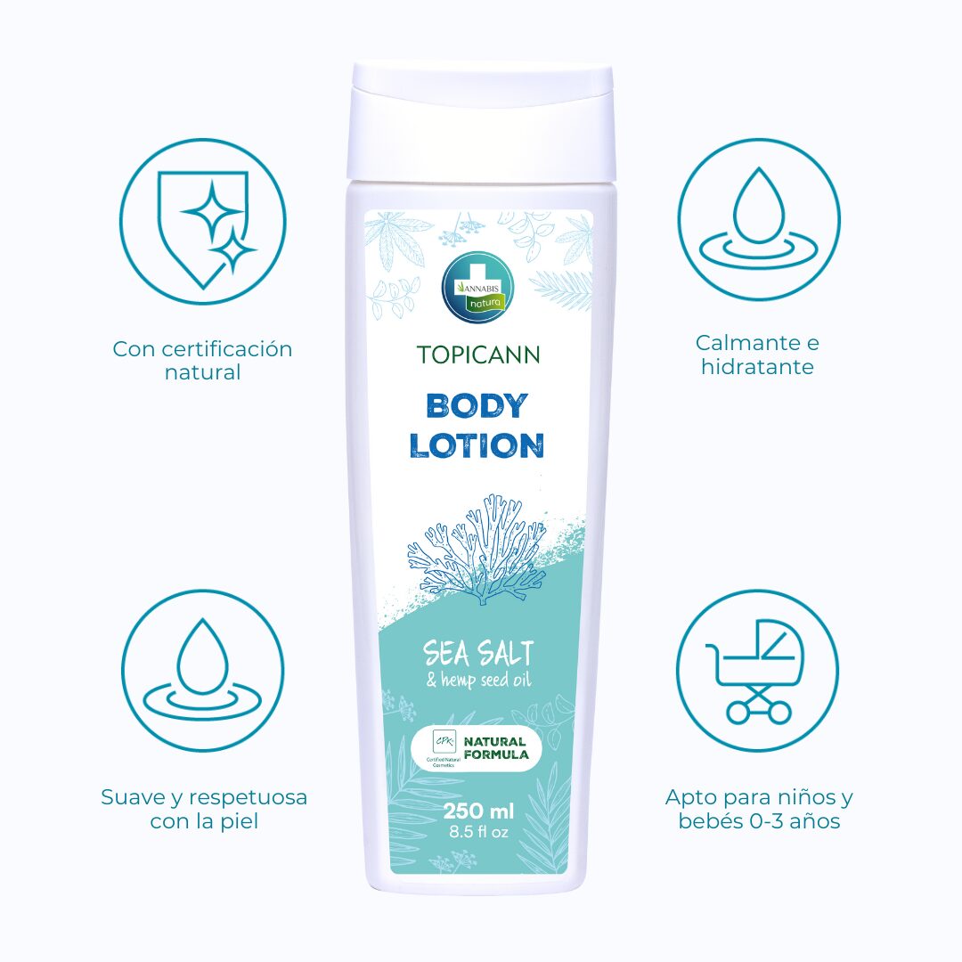 Hidrata y nutre tu piel con loción de sal marina y aceite de semillas de cáñamo. Suave, ligera y natural, para una piel radiante y saludable cada día.